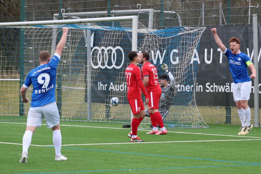 1.FC Eislingen: Kuhn – Gromer (85. Allmendinger), Bühler (90.+4. Schreiber), Leonhardt – Hölzli, Arngold, Sari (90. Cseri), Hodzic, Öztürk – Egrlic (68. Pauen) – Renner (78. Schaile).