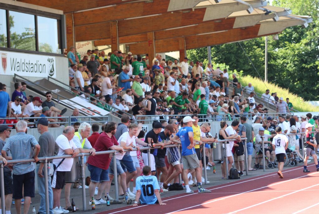 Acht Jahre mussten die Fans des 1.FC Eislingen warten, ehe am Sonntag im letzten entscheidenden Spiel gegen die Spielvereinigung Holzgerlingen der Aufstieg über die Relegation perfekt gemacht wurde. Knapp 1000 Zuschauer sorgten im Böblinger Stadtteil Dagersheim bei hochsommerlichen Temperaturen für eine gute Stimmung auf der vollbesetzten Tribüne im Waldstadion. Am Ende dürften die gut 300 mitgereisten FCE-Fans jubeln, denn ihre Mannschaft hatte nach einer furiosen Leistung den Sieg hochverdient.