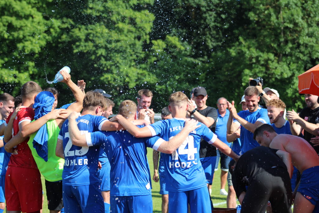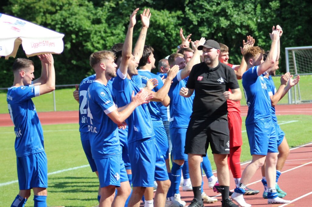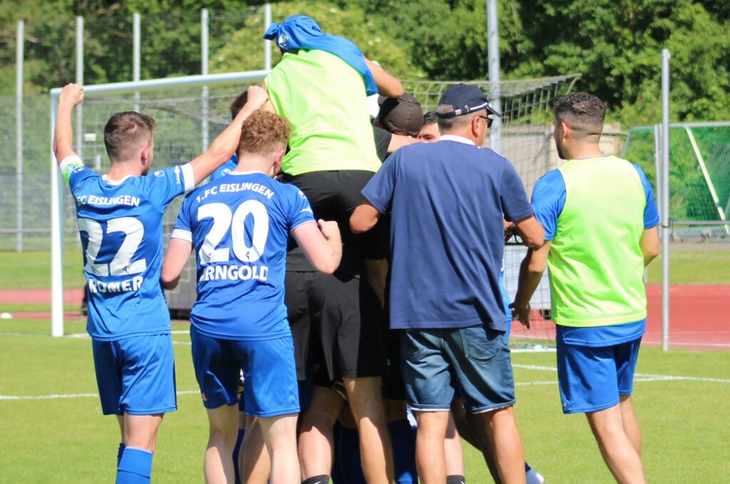 Eine lange Saison hat für den 1.FC Eislingen ein versöhnliches Ende gefunden. Verdient haben es sich die Spieler nebst Trainer Tim Schöler und seinem Co-Trainer Marius Funk allemal. 74 Punkte wurden in der Runde geholt, dabei 24 Siege eingefahren und sagenhafte 105 Tore erzielt. In der Relegation ließ man Bettringen und am Sonntag Holzgerlingen keine Chance. Der FC ist verdient wieder in der Landesliga.